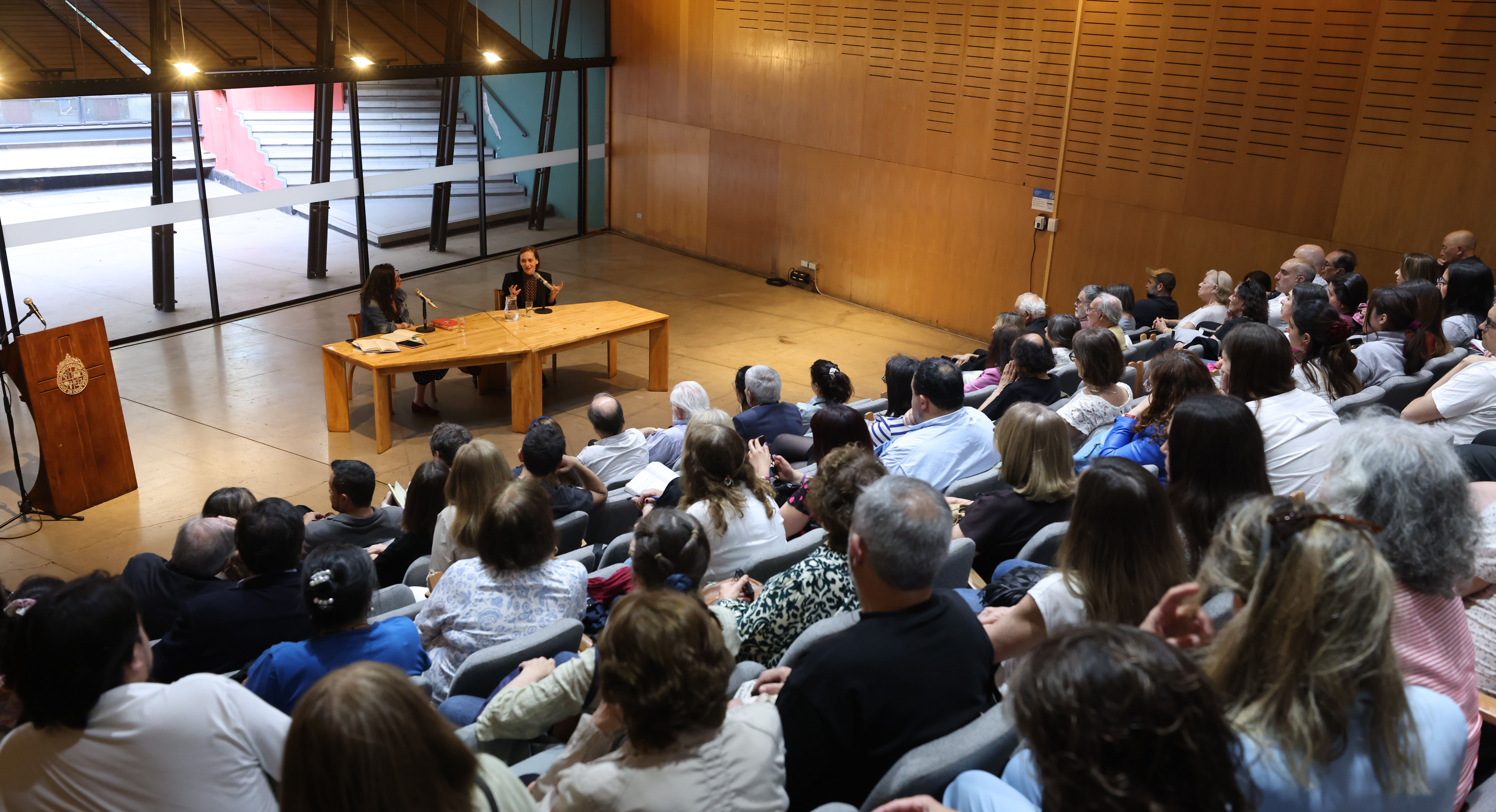 El jueves 13 de noviembre, la autora estadounidense conversó con la profesora María José Navia, en el Auditorio de la Facultad de Arquitectura, Diseño y Estudios Urbanos, sobre su escritura y sobre cuánto hay de planificación o de instinto en la construcción de sus protagonistas y sus historias. “Según mi experiencia, siento que, a veces, el personaje toma decisiones por ti. Va a sonar muy loco, pero casi parece como un fantasma”, declaró.