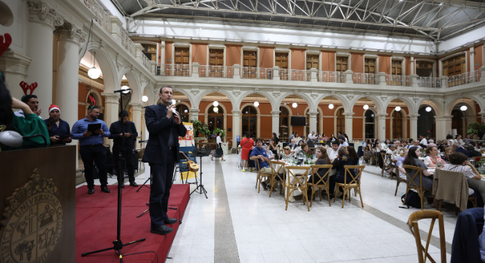 Personas que se encuentran en situación de soledad fueron invitados a una cena fraterna en Casa Central, donde compartieron la mesa con profesores, estudiantes y funcionarios. La universidad buscó este año resignificar la celebración navideña, poniendo en el centro el encuentro humano por sobre la ayuda material.
