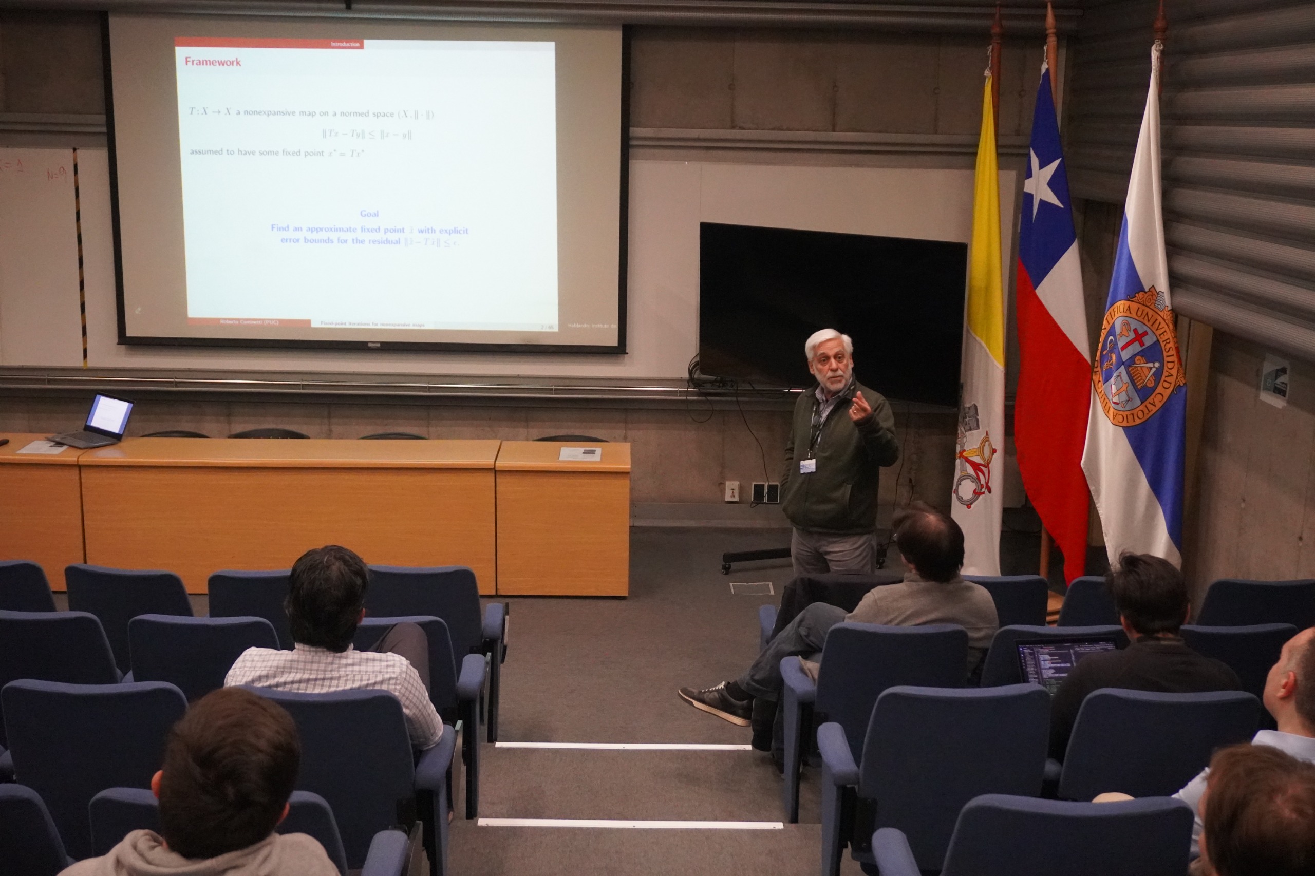 El profesor Cominetti señala que su trabajo es sobre optimización continua: “Eso cubre temas muy clásicos, como el cálculo de variaciones y la teoría de control óptimo, hasta problemas muy concretos de programación matemática en dimensión finita y de programación lineal. He desarrollado herramientas para estudiar el comportamiento de problemas de optimización y cómo las soluciones dependen de los parámetros del modelo, así como su aplicación al diseño de algoritmos”.