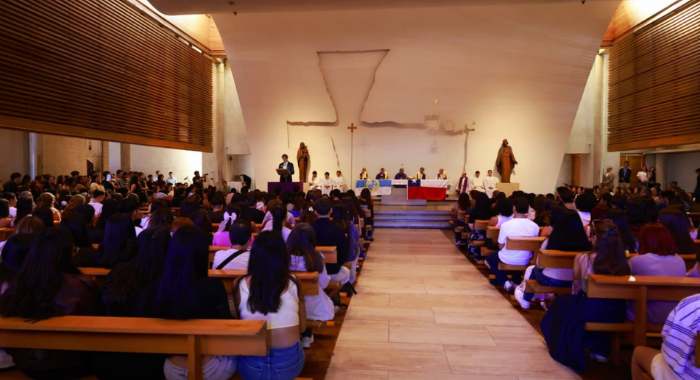 Con la Iglesia del Sagrado Corazón del campus San Joaquín repleta, la Universidad Católica dio la bienvenida a las y los nuevos estudiantes que este año se integran a la comunidad universitaria. En la ceremonia, organizada por la Dirección de Pastoral y Cultura Cristiana, se invitó a los jóvenes a acercarse a conocer los diferentes proyectos de evangelización o de solidaridad que existen en la UC.