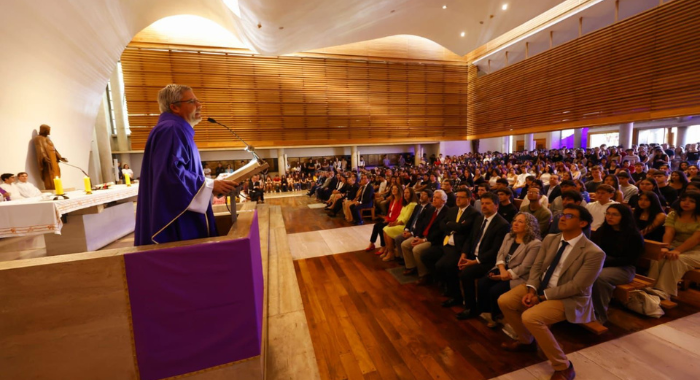 Durante su homilía en la misa de bienvenida celebrada en el campus San Joaquín, el Pbro. Osvaldo Fernández de Castro llamó a las y los nuevos estudiantes a complementar la excelencia académica con una mirada centrada en la dignidad humana, el amor y el servicio.