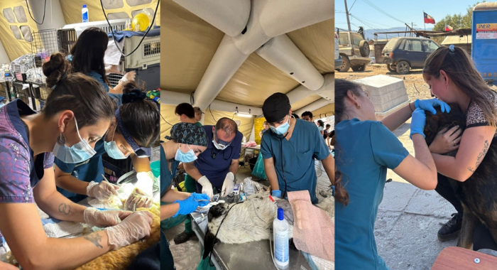 Ya el sábado, el grupo se hizo cargo del hospital de campaña en la Plaza de Penco, donde atendieron durante el día y la noche, y realizaron soporte, fluidoterapia, oxigenoterapia, limpiezas quirúrgicas, derivaciones a urgencias y más. En total, atendieron a más de 200 animales.