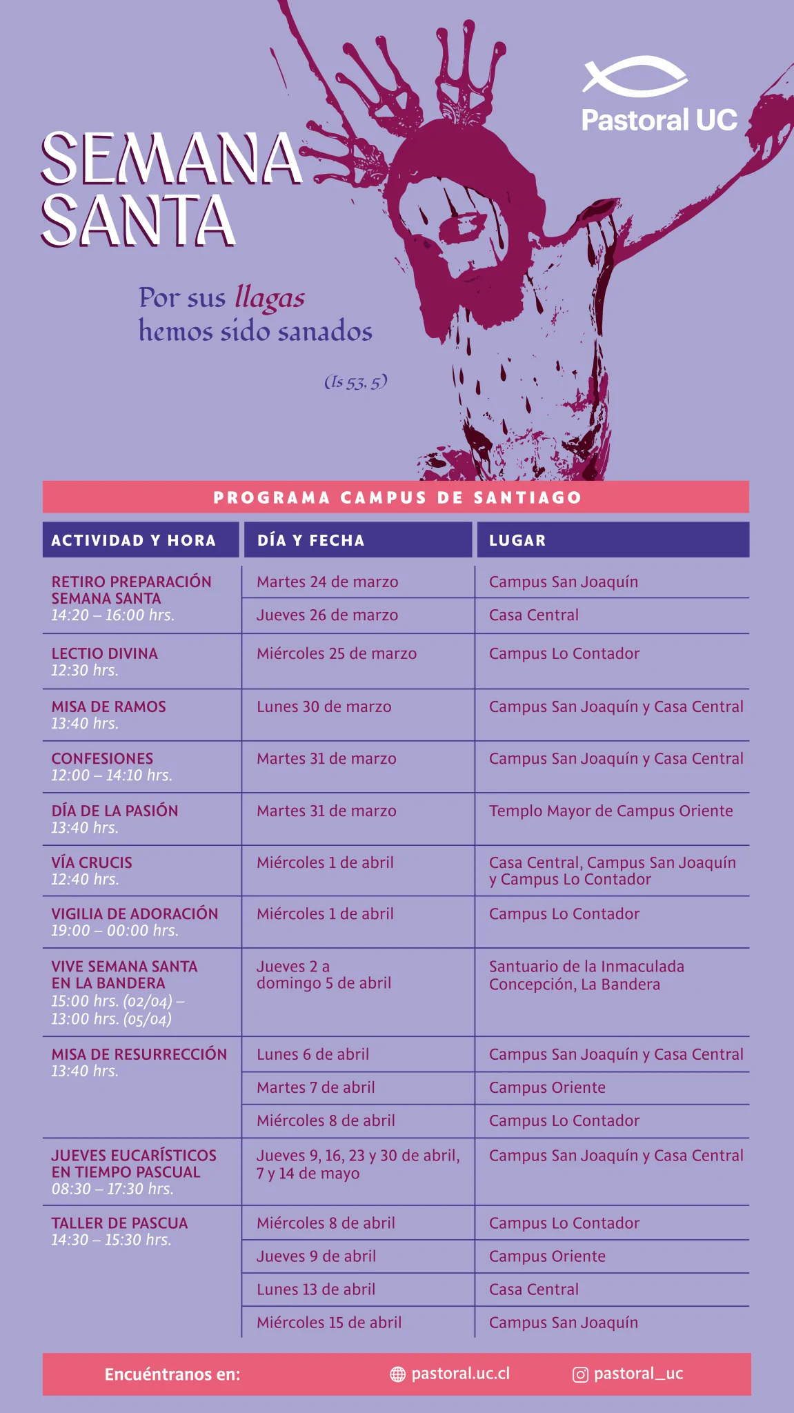 A continuación conoce las actividades de la Semana Santa organizadas por la Pastoral UC.