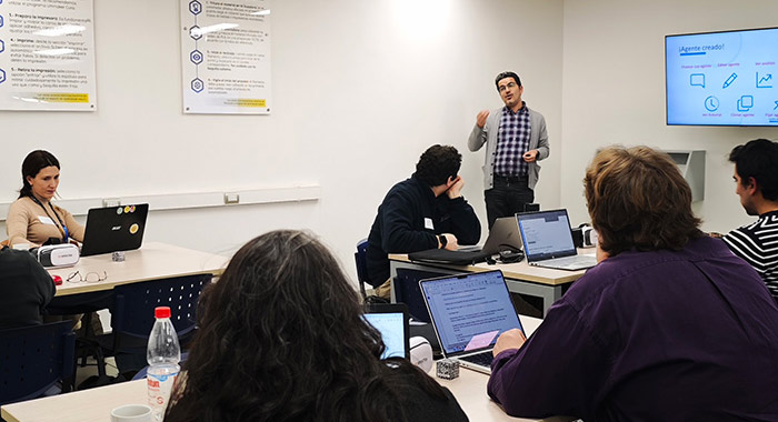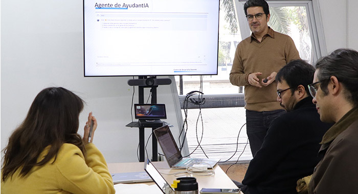 AyudantIA es un proyecto institucional que consiste en capacitar a profesores y profesoras de distintas facultades, para crear sus propios agentes de inteligencia artificial —chatbots diseñados con la información, bibliografía y contenidos de sus cursos— con el objetivo de acompañar al estudiantado en su proceso formativo.